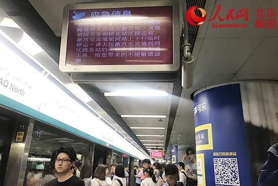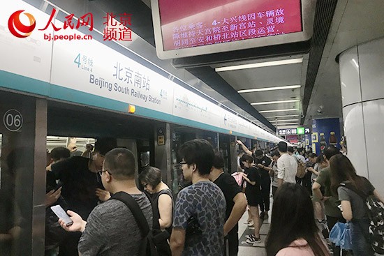 地铁四号线上行(开往安河桥北站)一列车运行至菜市口站区间发生故障,部分列车行车间隔加大。人民网北京频道池梦蕊摄