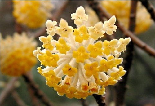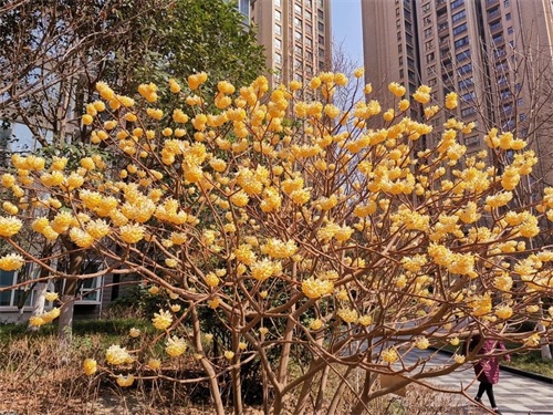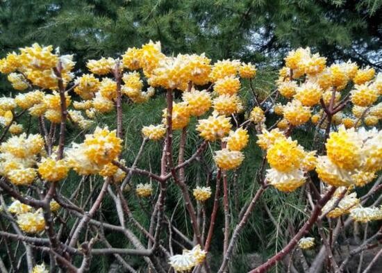 第一,结香植株高度中等,先花后叶,冬末春初开花,花朵黄色,属于早春花木,夏秋季叶色绿色,是一种很好的观花、观叶植物,在南方多栽于庭园观赏,在水边、石间栽植尤其适宜,在北方多盆栽观赏;
