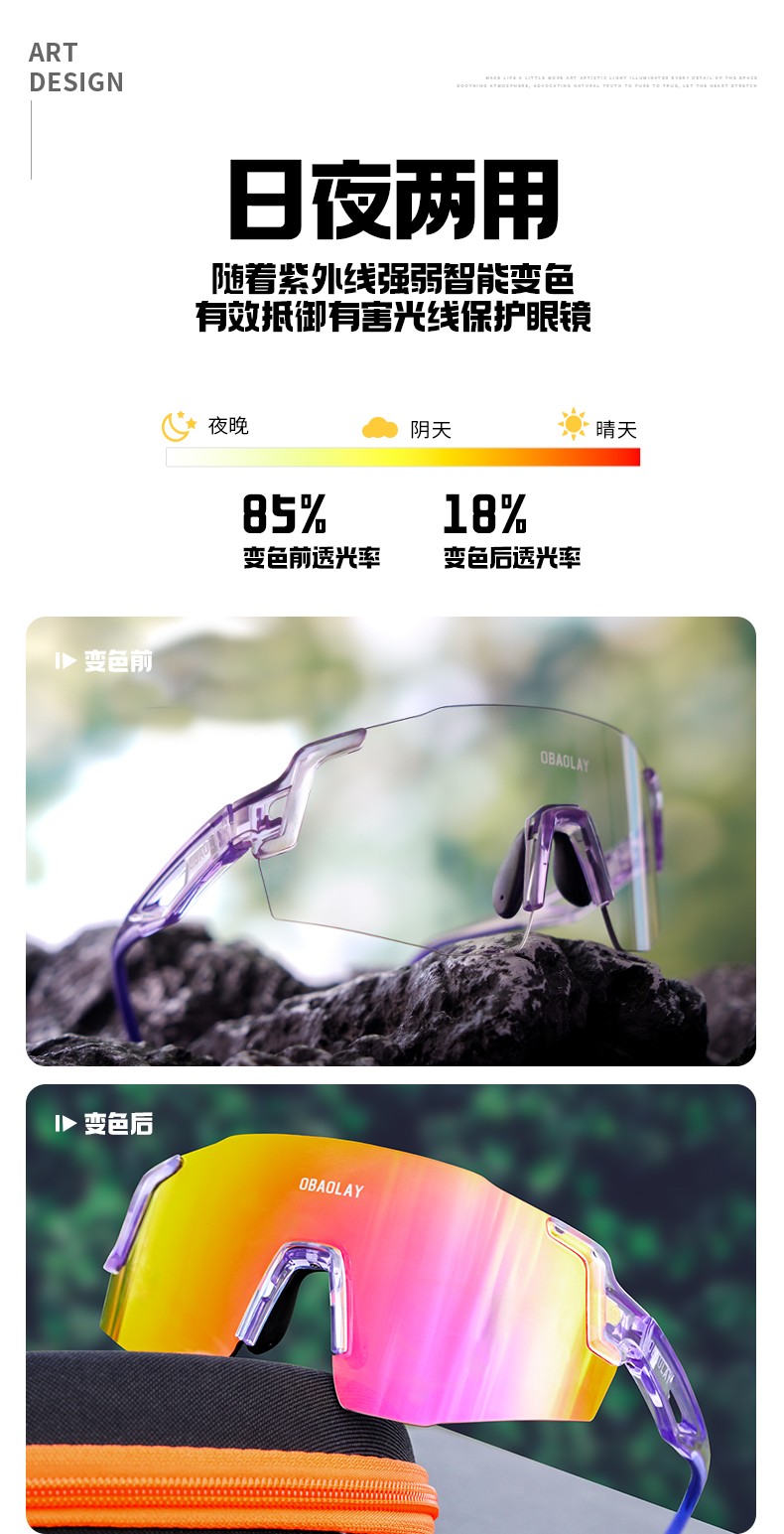 不管你是骑行、跑步、开车还是登山钓鱼,这款骑行眼镜都能满足你,而且轻不压鼻梁,时尚又大气。搭配智能变色镜片,只会是天仙配!