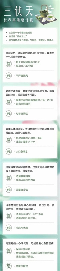 1. 【合理饮食】:在三伏天,应该多吃一些清淡、易消化的食物,避免油腻和辛辣。
