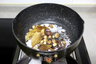 八角3颗、草果数颗、香叶3片、桂皮1块、白蔻数颗、盐3克、丁香1撮、大葱半根、姜1块、老抽适量、热水适量