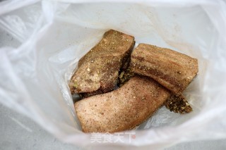 4.将五花肉与腌肉料同入塑料袋中,攥紧袋口,让腌肉料裹满肉块;入冰箱冷藏过夜,如果是白天做,至少腌8小时;