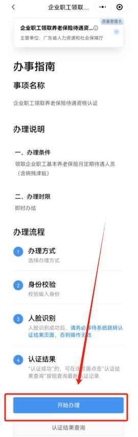六、进入办事指南,点击开始办理,根据提示开始认证操作。