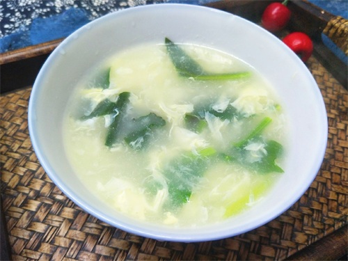 1.做这道汤的时候,菠菜炝锅时间不要太久,否则菠菜叶子容易变黑,很影响口感,也会带有淡淡的苦涩味,大概10几秒钟就可以了。