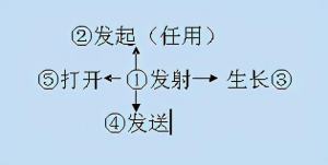 “发”的本义是①发射,引申义什么意思举例,由意触发的动作引申出⑤打(拉)开举例、②发起、④发送,箭被射出后,距离渐远,引申出③生长。