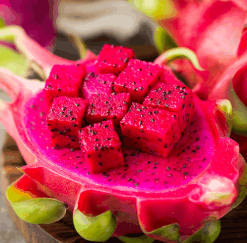 第五步,将提前准备好的火龙果去皮切成小块,切好之后装碗备用。