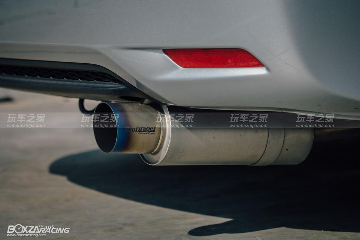 排气选用Pro Drager排气,烤蓝的尾嘴更符合思域这样的改装车。