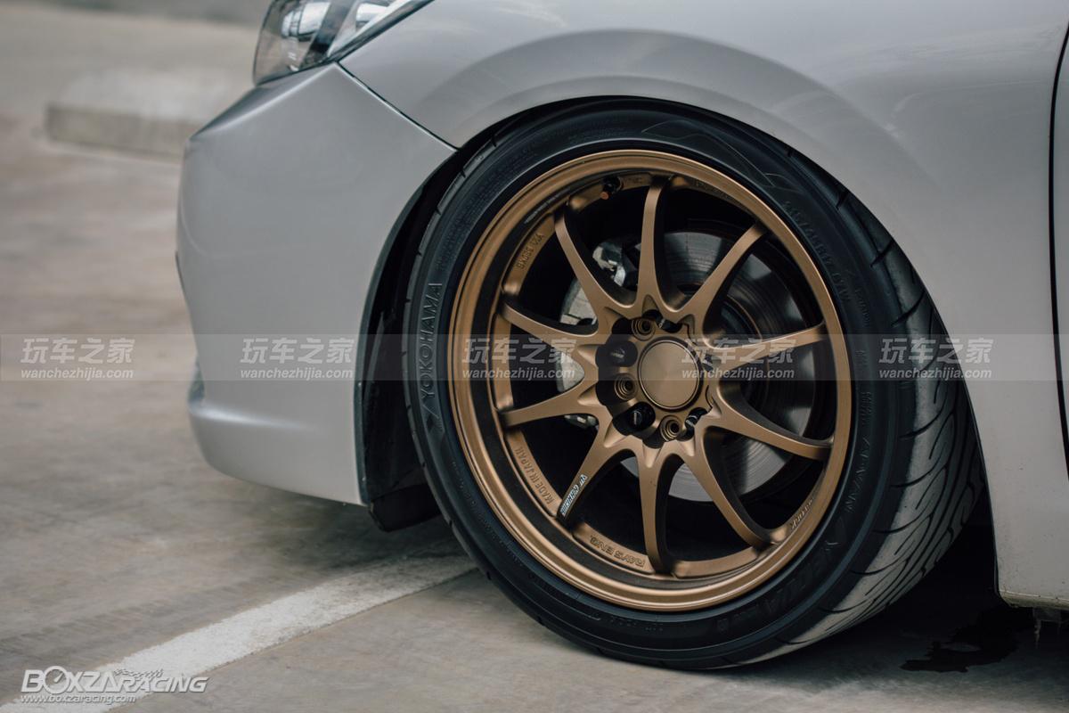 行走系统方面,改装了17寸Volk Racing CE28轮毂,搭配的是优科豪马AD08R轮胎。