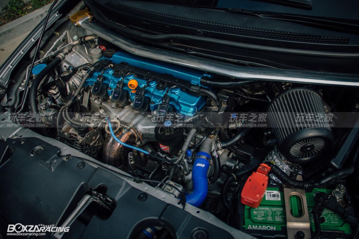 动力方面,这台思域搭载了R18Z发动机,车主为刷写了ECU,并更换了更粗的管路,以及Pro Drager排气系统。