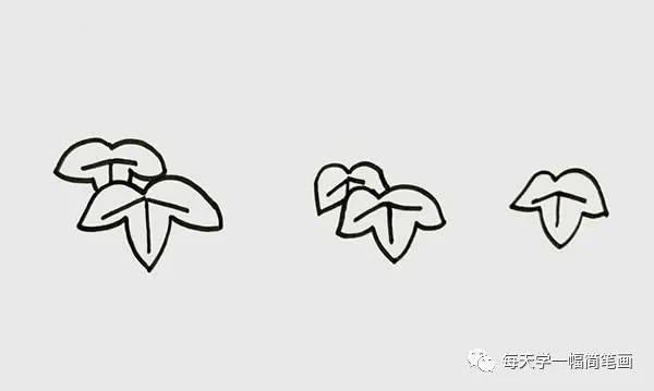 步骤一:先画出两片叠加在一起的叶子,在上面画出细节,然后用同样的方式画出其它的叶子,画的时候注意越往右形状越小。