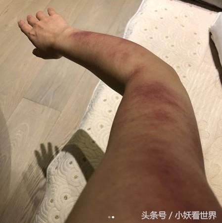 严重淤血的手臂,这画面惨不忍睹啊!粉丝们表示非常心疼!