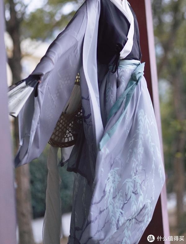 汉服是三件套,一件交领上襦一条下裙一件大袖衫外披,灰色主色有股清冷感