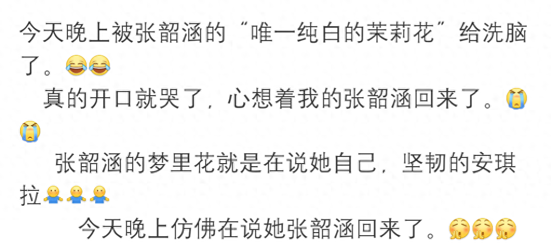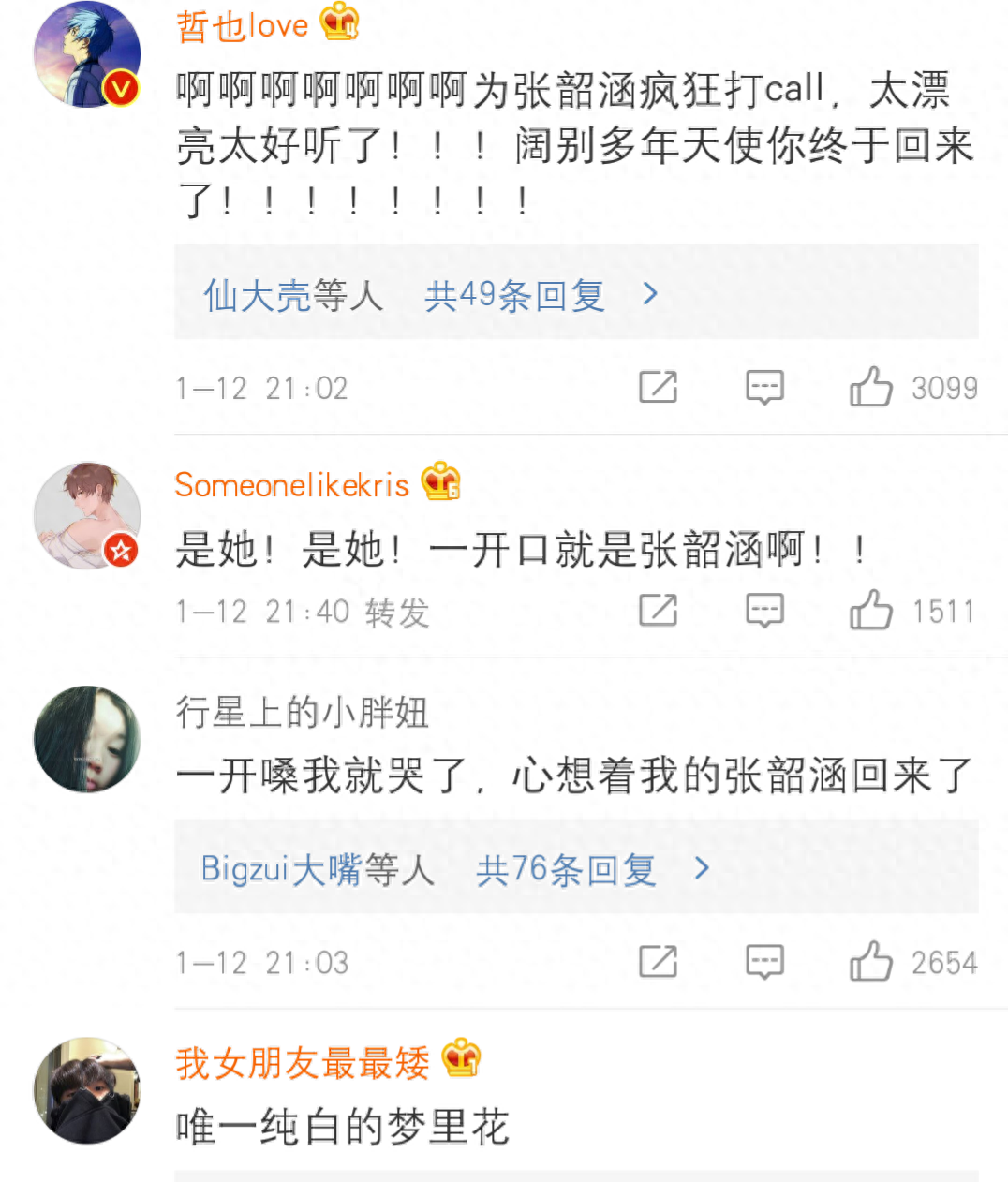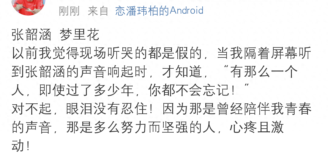 网友:“一开口就哭了,我的张韶涵又回来了”“即使过去很多年也没有忘记,对不起,眼泪没有忍住”