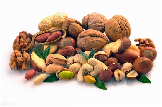 坚果包括有核桃、杏仁、松子、腰果、开心果等,富含多不饱和脂肪酸(好的脂肪),有助于降低低密度脂蛋白,保持血管畅通。建议你每天吃大约30~40克坚果,约核桃3~4个或松子两把。
