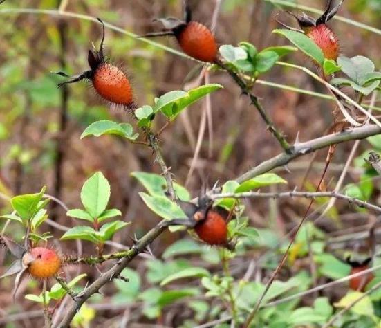 每年金樱子成熟的季节,大人们也会叫上我们带上手套去采摘金樱子,采摘回来泡酒,听大人们说,金樱子酒可是很好的保健酒品,具有固肾涩精的功效,对遗精、白带、神经衰弱、久痢都有疗效。