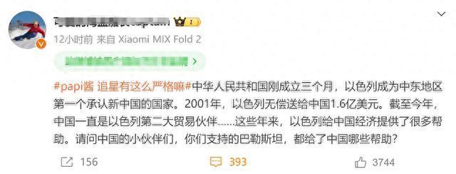 这几天的巴以冲突无疑是很多人都在关注的重点话题,随着以色列多次威胁要攻入加沙,国内中文互联网上持有不同观点的网友也纷纷站了出来。而就有中国网友表示,以色列曾经在2001年无偿送给中国1.6亿美元,给中国提供了很大的帮助。言外之意,就是我们要学会“感恩”,要在这次巴以冲突中支持以色列。