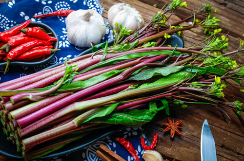 不过,并不是所有地方的红菜薹都有如此殊荣,历史上名气最高的要数四川和湖北武昌栽种的红菜薹了。