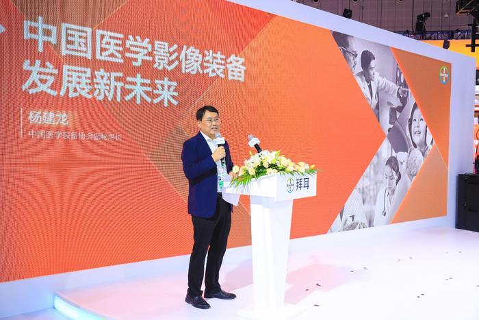 与会嘉宾中华医学会放射学分会副主任委员王培军、中国医学装备协会副秘书长杨建龙分别围绕医学影像行业数字化趋势和中国医学影像的未来发展进行主旨发言。王培军聚焦于医学影像诊断所面临的全球挑战,指出:“精准诊疗,影像先行。目前医学影像行业的发展趋势是智能化、数字化,医学影像科与智能智慧技术紧密联系在一起。数字化、智能化医疗设备为广大人民的医疗健康保障发挥着重要的作用,是医学影像行业的主要方向。”杨建龙提出:“未来医学影像的发展,特别在基层有广阔的市场。希望有更多先进技术进入中国,尤其帮助到广大的基层人员,在有效装备的质量提升、人才培训教育方面给予更大的帮助。”伴随着人工智能、5G等技术在各种场景应用不断涌现和升级,医学影像技术正在经历一场令人瞩目的变革。作为深耕中国百余年的医疗企业,拜耳在影像诊断领域积极响应数字时代医疗智能化需求,通过整合全球研发资源、加大对中国市场的投资和研发力度、率先应用前沿技术等,参与并推动中国的数字医疗革命。