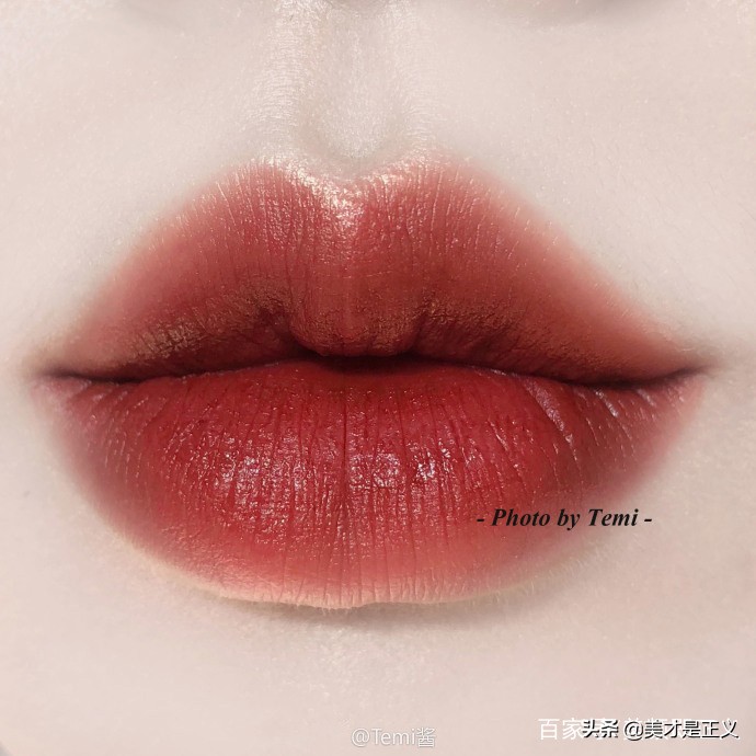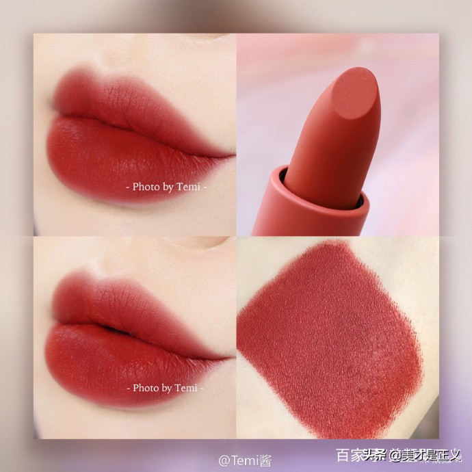 这一支是一个雾蒙蒙的暖砖红棕,很有秋冬感,黄白皮都很好驾驭。比起chili那样的砖橘色更适合黑黄皮,非常的显白!丝绒质地使用感舒适顺滑,而且让唇面看起来也十分的高级,虽然略微有一点的沾杯,但是瑕不掩瑜,是冷门却十分优秀的口红~