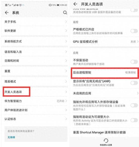 具体步骤:连续点击手机【设置】的【版本号】6次,然后选择【开发人员选项】,后台进程控制在2-3个即可。
