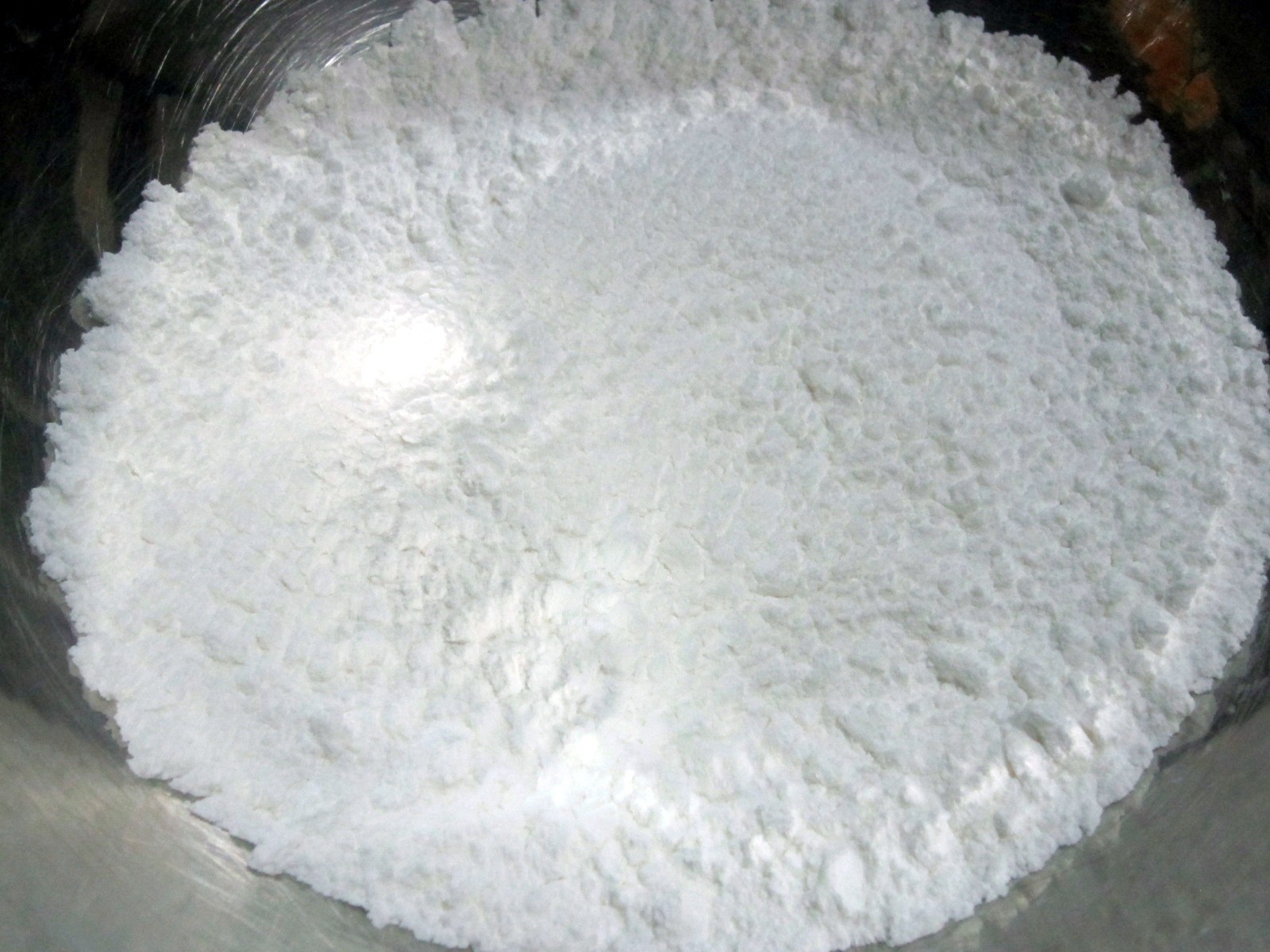 1、准备番薯淀粉。常见的番薯粉的颗粒比较粗的,可以用擀面杖先将大颗粒番薯粉压碎后过筛待用。