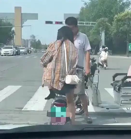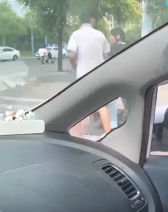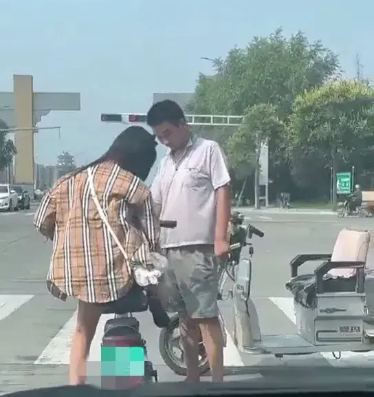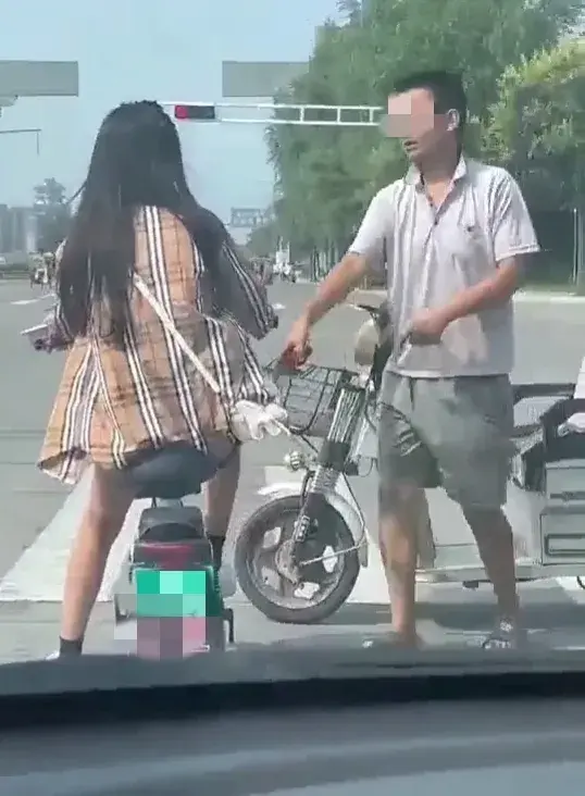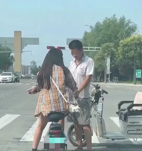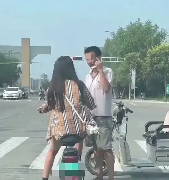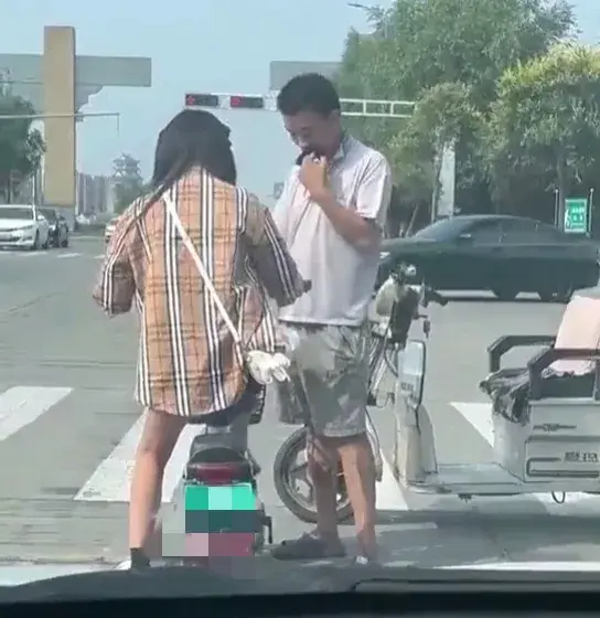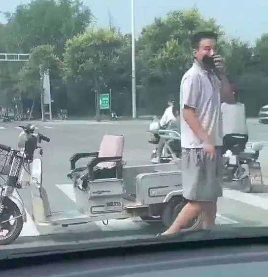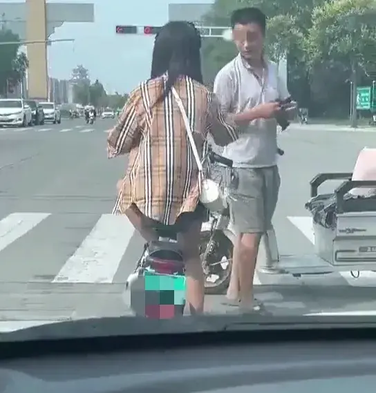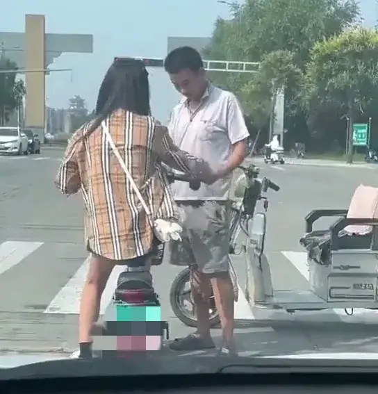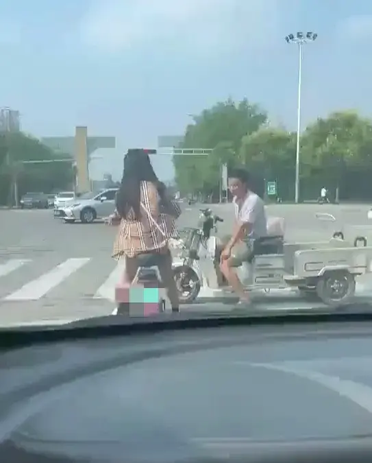 视频显示拍摄时间为白天,在某地车来车往的十字路口附近,一名骑电动三轮车的年轻男子向一名正在等红灯的年轻女孩说着什么。因为视频是在车内拍摄,所以并不能听到他们之间的对话内容,但是可以清楚看到该男子不断用手指向女孩脚部。
