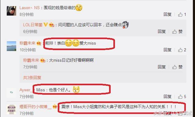 LOL知名游戏主播Miss在微博被网友们询问和若风到底是什么关系?在Miss开通微博后的几分钟就收到了问题,而且这个问题也确实是很多粉丝们都想知道的!之前就一直传言若风喜欢Miss,不过Miss始终都没与正面回应过,而若风的绯闻女与偶戚蓝尹也是不发声,大鼻子也是在表现一番之后没了动静,这不Miss刚开微博问答就被粉丝们提问了,这个666还是很值的,毕竟很多粉丝都是很八卦呢!