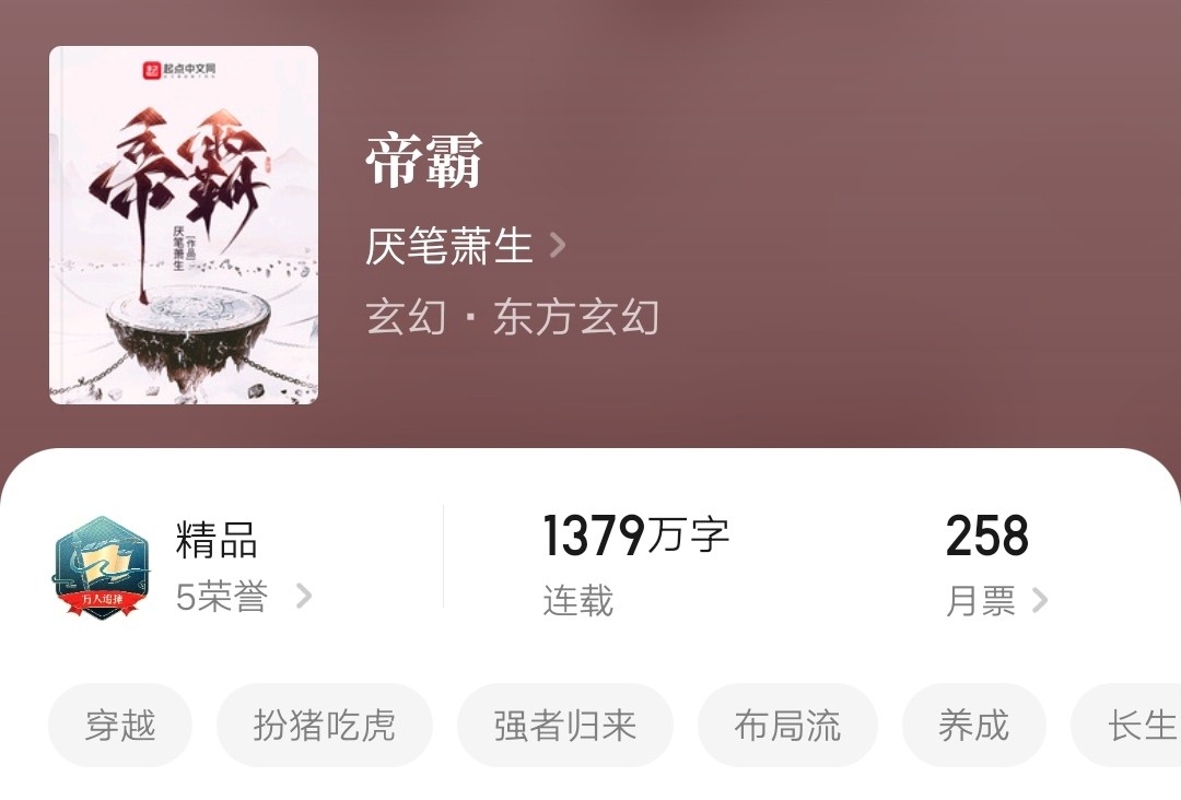 书评:标准的扮猪吃虎,前面九界部分可以说是非常流畅的装 逼写法,看着让人非常舒畅。不过后续套路逐渐重复,没有太多新意,前面挖的坑也没有填上!酌情弃坑!
