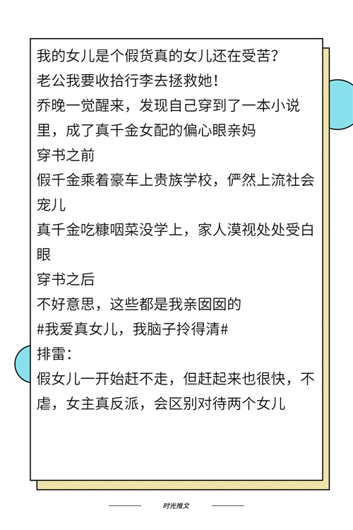 第五本:穿成偏心假千金豪门妈,女主一想到未来书中自己的凄惨的下场,觉得自己还可以拯救,赶紧找回自己的亲生孩子才是正事!
