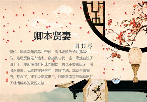 《卿本贤妻》苏氏非常的享受这一世,躺着有人按,走路有人搀,出门有马车,不用干家务不用上班赚钱,除了没有一生一世一双人,一切都那么完美。她能接受夫君爱好红袖添香,也没有想和这个社会世俗抗争,自己不说出去的话谁都想不到她会是现代穿越过来的。她就像个旁观者在这个社会生活,不温不火。直到她年过四十居然老蚌怀珠,两辈子的憋屈一起爆发了,我是穿过来,我要活出自我,姑奶奶不装了,爱咋咋地……