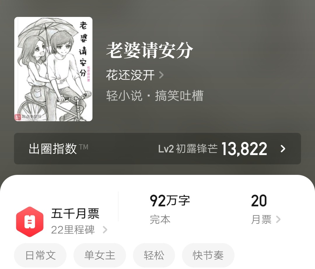 推荐理由:这是一本广受好评的单女主狗粮文:小说讲述了女主角何妨重生回到过去,寻找男朋友,在找到男朋友之后在一起生活的日常。小说只看故事主线其实是非常单调的,因为没有太多的剧情冲突,没有太多的爽点。但作者高超的文字技巧却将故事写得十分温暖,让人看完后便心生希望,看完后觉得一切都是值得的。另外,这本小说的简介可以说透露出本书最精华的部分了,也是我最喜欢的一句话,大家欣赏一下“我小心翼翼地活着,就是怕蝴蝶效应让我失去你。”