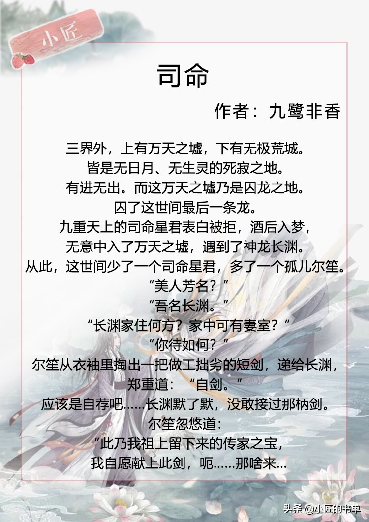 小匠安利|九鹭非香三生系列,强推司命、三嫁未晚,男主是龙小说