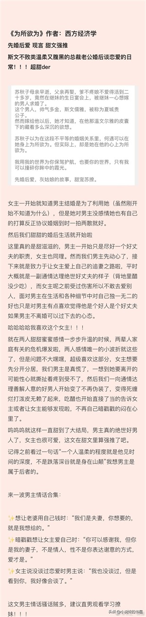 现言先婚后爱小说书单,强推《为所欲为》,甜甜的婚后日常!
