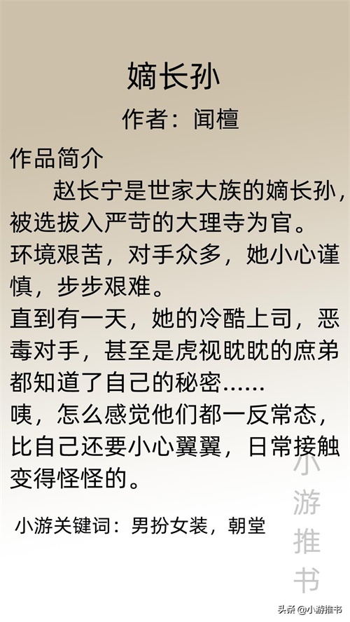 女扮男装各种类型小说! 第一本:《长安好》 第二本:《电竞大神暗恋我》 第三本:《国民校草是女生》 第四本:《夫人救命,将军又有麻烦了》 第五本:《第一纨绔》 第六本:《...