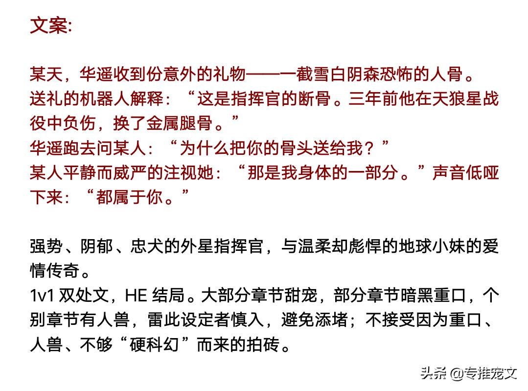 小说推荐:高质量甜宠文,越看越上头 真的是甜甜甜!宠宠宠! 三分热恋:文静甜妹VS斯文败类,追妻火赞场,疯批男主 五号工装:心狠手辣讲义气的大佬X白切黑绿茶软妹,治愈的小...