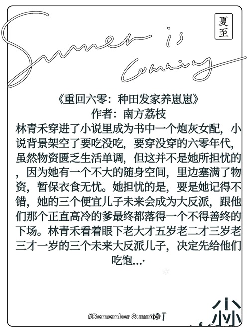 书评:女主穿越到一本书了。改变了很多人的命运,很喜欢的一本空间文,困难时期女主用美食征服了三个儿子,培养他们成为更强一代。男主虽然不善言辞,却是最宠媳妇和幺女,有责任和担当的好男人!周家四房白手起家,也没有忘记带着亲戚朋友一起发家致富……文中语言诙谐幽默风趣。男女主的感情真是羡煞旁人,一辈子恩恩爱爱。