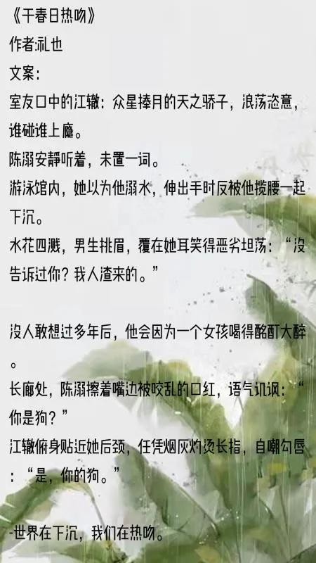 《于春日热吻》怎么说呢,有一点点瑕疵,但是喵喵觉得还好。这本是我近期又重新看过的,很满意,很甜!值得一试。