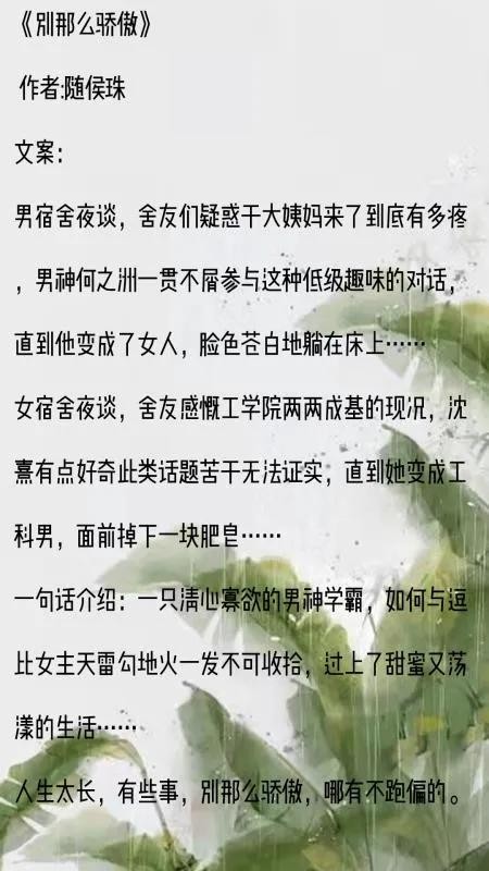五本小甜文 1.《锦衣香闺》——笑佳人 第一个男人是个俊俏的穷秀才,后来春风一度后把女主给甩了,不过女主心很大,拿了秀才的分手费,还是开开心心的,因为有了秀才的孩子,无...