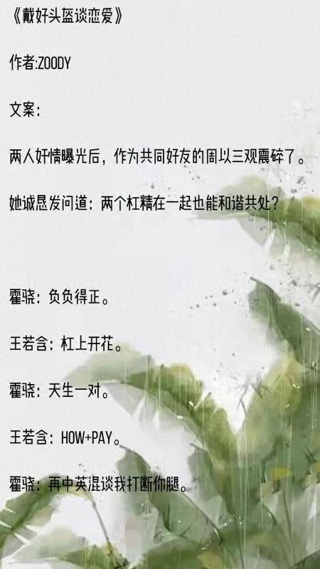 《戴好头盔谈恋爱》都市小甜文,入股不亏!男女主真实又浪漫,蛮喜欢他们的日常,话说,看完之后喵喵连后续剧情都脑补完了。