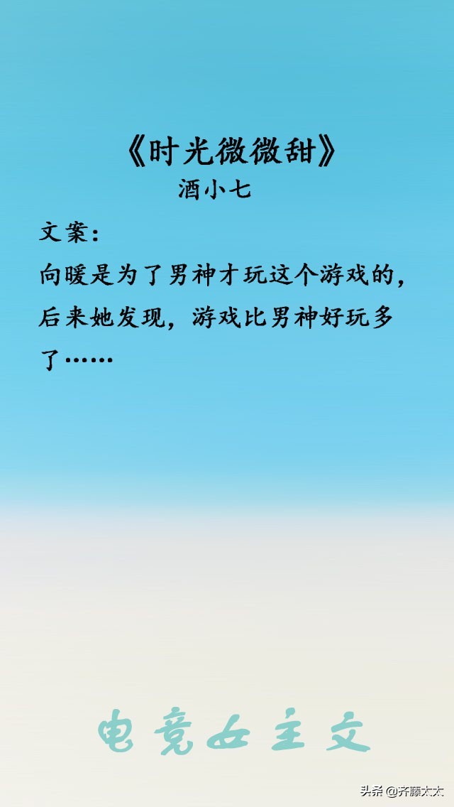 酒小七、七宝酥、春风榴火、蒋牧童、锦橙~啊啊啊啊都是我很喜欢的小甜文作者,文笔很好的那种老作者,很多年前就追她们的文了,所以我真的是老粉呀,我还记得七宝酥之前叫“马甲乃浮云”咧哈哈哈,所以虽然我没有看过她们写的电竞文,但是我可以直接跟你们推荐她们呀,她们写的文也靠谱,大多数偏欢脱向小甜文~