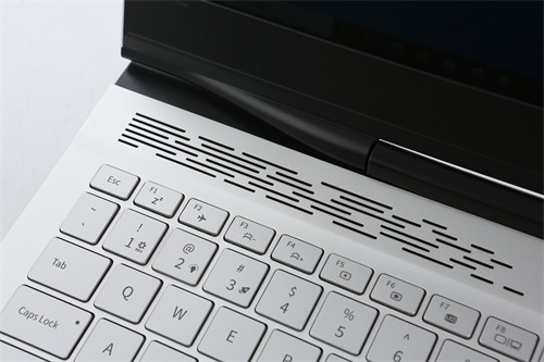 和以往的F117系列产品不同,机械师F117-X在机身后尾(背部)还加入了一小部分黑色的塑料外壳,它和银色的机身形成鲜明的撞色,带来了很好的点缀效果。如果从机身背部看过去,你会发现黑色的后尾或许才是机械师F117-X在外观上融入的全新机械美学概念,这台机器的背部加入了凌厉流畅的线条,除了拥有部分接口外,左右两侧的散热出风口还加入了起伏有致的“水滴塔流纹”,在我看来这其实有点像超跑的尾翼,给人一种霸气十足又颇具档次的感觉。