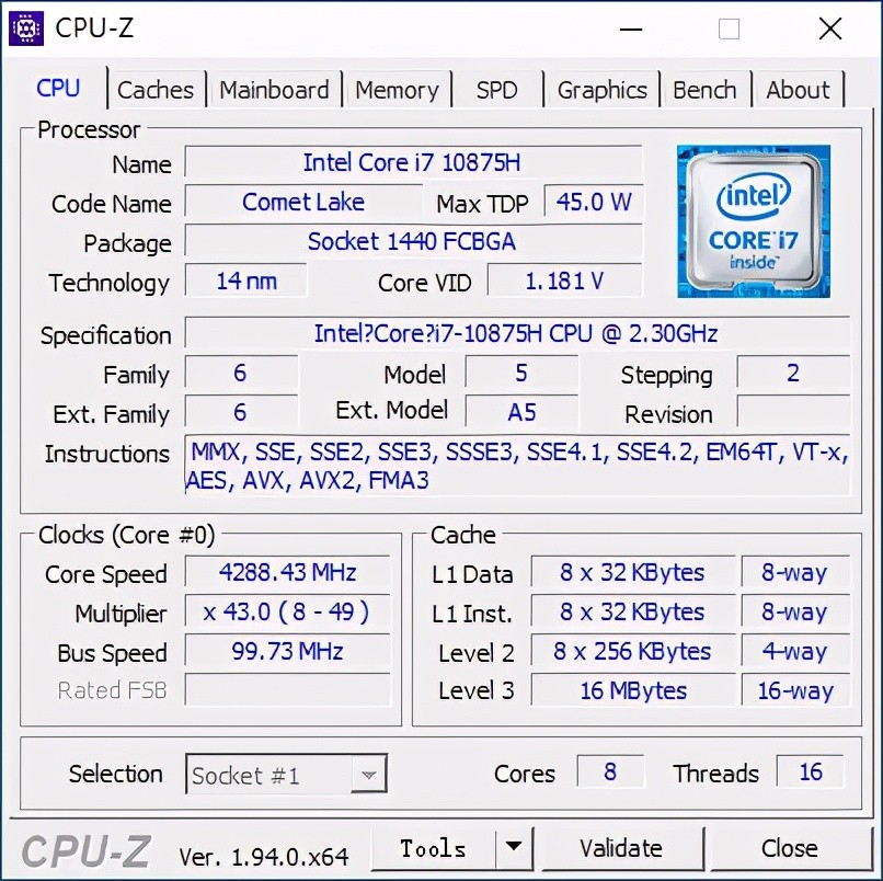 根据独显的不同,机械师F117-X有多个版本可供选择,不过无论哪个版本,它在处理器方面都统一搭载的是英特尔第十代酷睿i7-10875H,并没有酷睿i5版本,这倒让我们在购买时选择起来更加简单。英特尔酷睿i7-10875H处理器基于Comet Lake平台,采用优化后的14nm++生产工艺,拥有8核心16线程设计,基础频率为2.3GHz,最高睿频5.1GHz,TDP功耗为45W。这颗处理器相比十代酷睿i7-10750H(6核12线程)除了最高睿频有所提升外,核心数量和线程数量也有明显提升,在英特尔第十代酷睿标压处理器家族和游戏本市场中拥有很大吸引力。