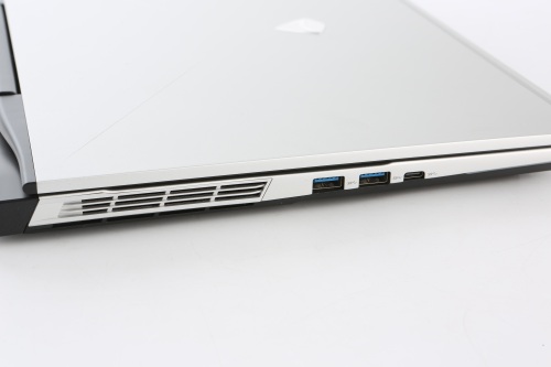 机械师F117-X的接口分布得比较均匀,也保留了机械师一贯的特点,比如比较粗大、不常用的线缆(电源线、网线等)都设计在机身背部(它的背部拥有一个电源接口、一个HDMI接口以及一个RJ-45接口),机身左右两侧则设计有常用的USB-A、USB-C接口(这台机器一共设计三个USB-A接口以及一个USB-C接口),可以满足大多数普通玩家日常使用需求。