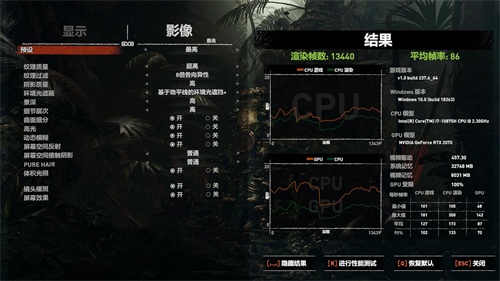 《古墓丽影:暗影》1080p最高画质平均帧率86fps。