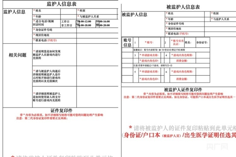 某平台未成年人申请退款需填写的部分信息(央广网发)