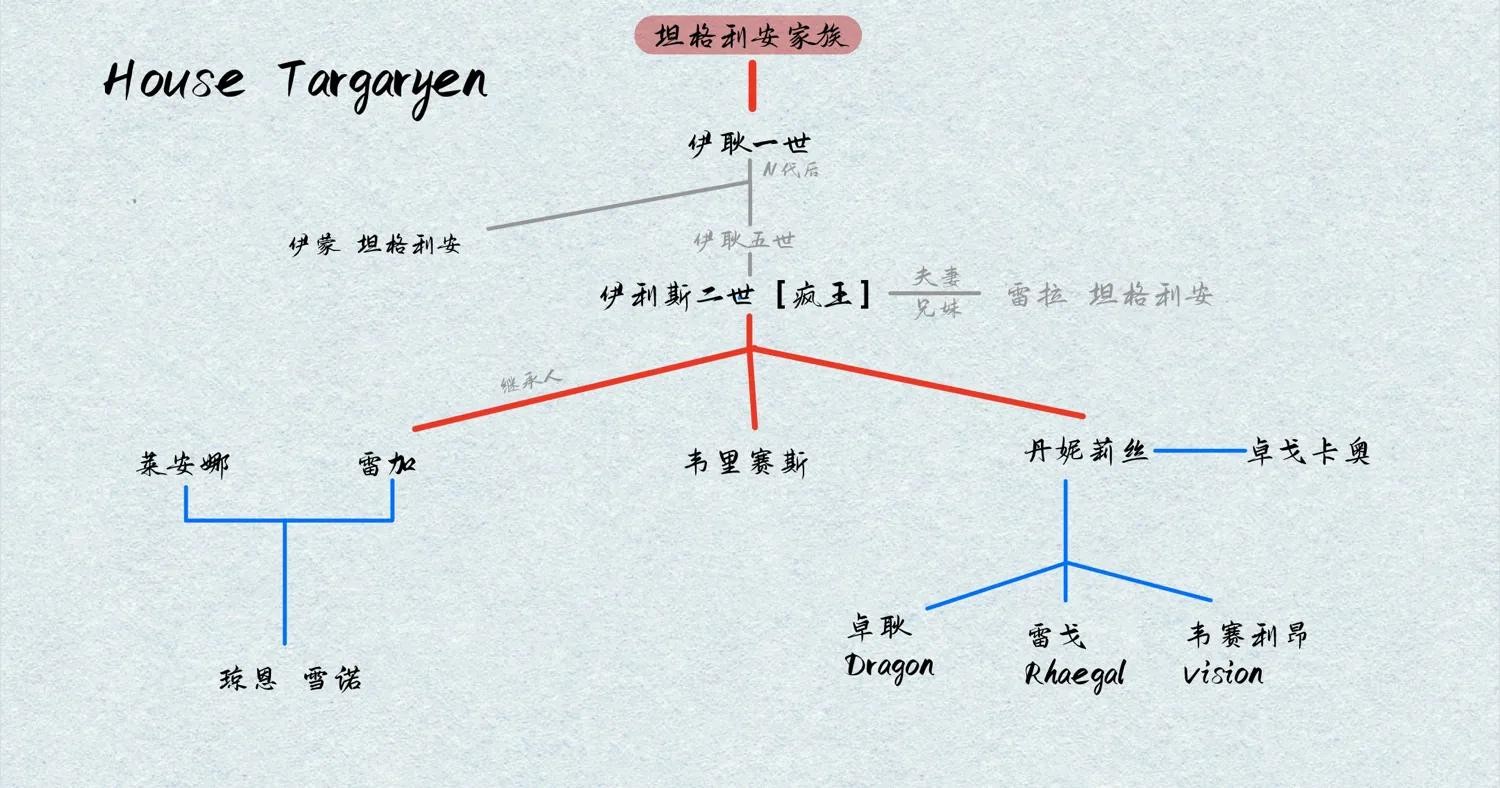 今天,我们梳理的家族是维斯特洛大陆上的坦格利安家族,聚焦剧中出现过的坦格利安族人。