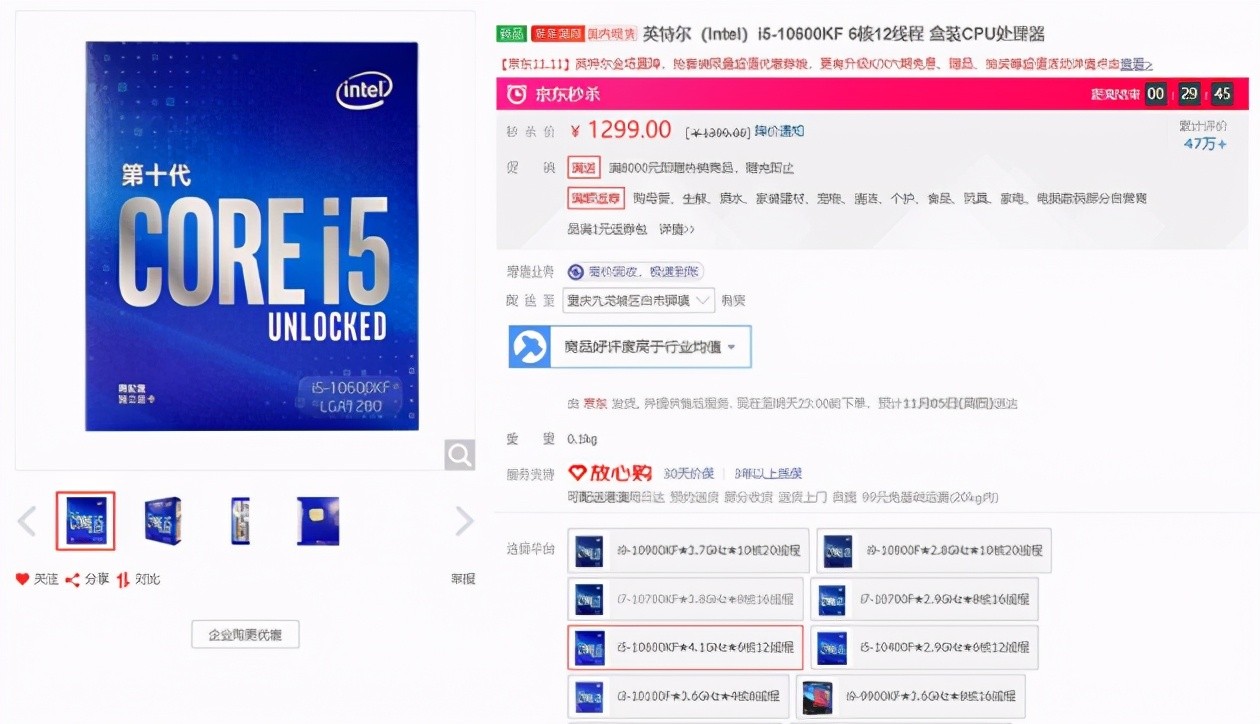 我们在京东上查了一下,英特尔酷睿i5-10600KF的自营售价原价1399元,同时长期有1299元的促销价;AMD锐龙7 3700X的自营售价原价2449元,同时也有2299元的促销价。双方长期差价维持在1000元左右,已经接近英特尔酷睿i5-10600KF的售价。从价格来看,两颗处理器根本不算是竞品。