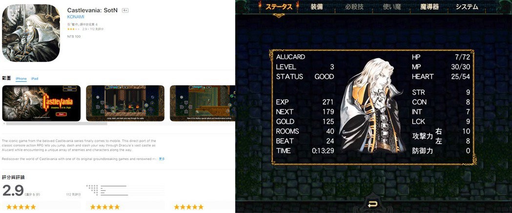 现在连手机平台都可以玩到《月下夜想曲》了,不过目前优化的程度似乎是还不够好…