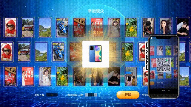 用户扫码发送弹幕,可以更快的炒热现场气氛,活动开始前由主持人告知现场用户发送弹幕就有机会中奖,可以极大的提高现场用户的积极性,拒绝冷场。相比于其他方式的抽奖,弹幕抽奖更加的新颖,更加的有趣。开奖后邀请中奖的用户上台,再让他大声读出他的弹幕内容,现场应该会别有一番风味了。对比直播间的弹幕抽奖,大屏幕弹幕抽奖更加的震撼,更具有科技感。