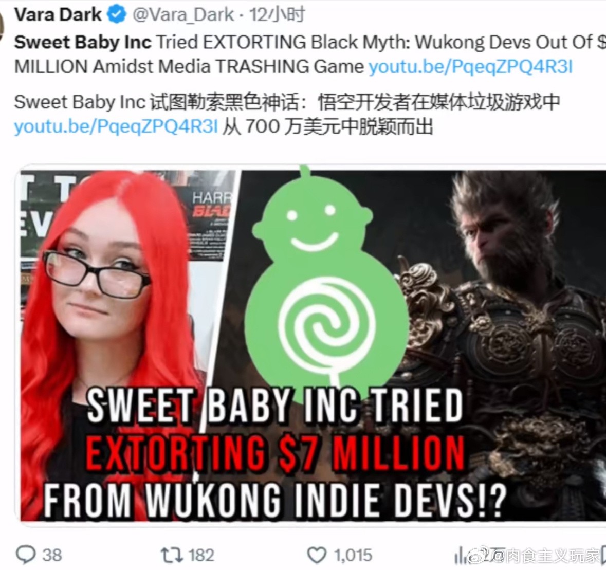 他在Steam上传了一个叫“Sweet baby指导过的游戏”的清单并号召玩家抵制该组织,随后Kanrutus老哥在受到了sweet baby高管Chris kindres的炮轰,并号召玩家举报Kanrutus并称这是对“自由与多元化以及玩家所喜爱的”的侮辱随后概论话题在推上引发了一场众多游戏玩家与sweet baby的舆论大战。